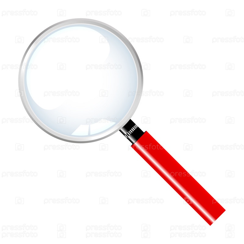 Увеличительное стекло лупа с красной ручкой на белом фоне