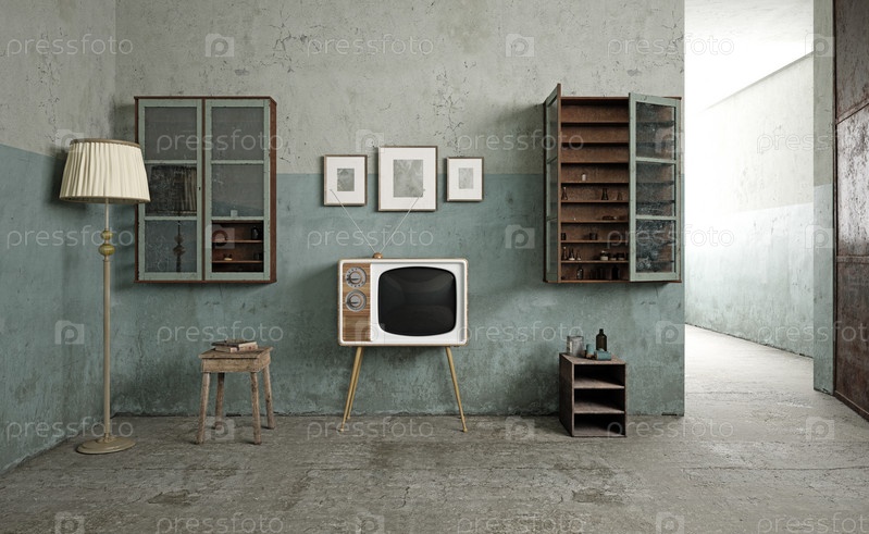 Винтажный телевизор в деревенской комнате