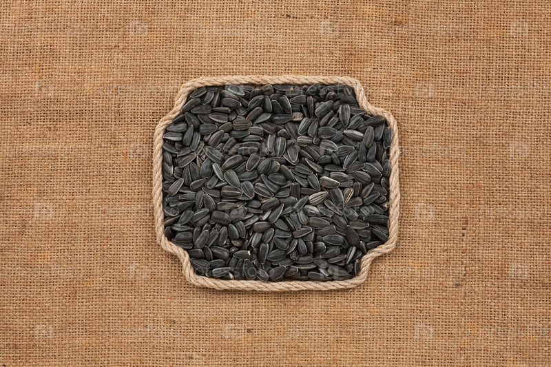 Рамка из веревки с цельным, спелым зерном подсолнечника. С местом для дизайна, текстовое место