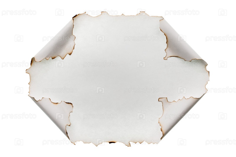 Свернутый в рулон листок бумаги с обгоревшими краями. Изолированный