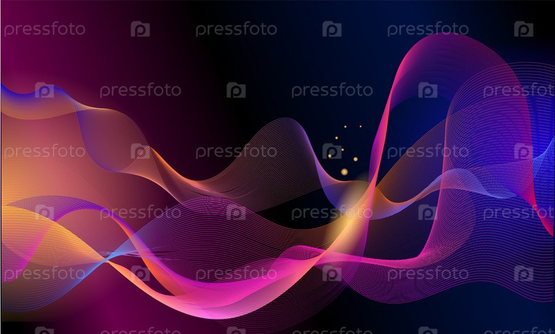 Абстрактные красочные волновые линии на черном фоне, концепция движения. Векторная иллюстрация