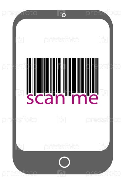 Изображение экрана смартфона, отображающего штрихкод с текстом «сканируй меня» под ним. Минималистичный графический стиль с белым фоном. Концепция сканирования штрихкода. Векторная иллюстрация