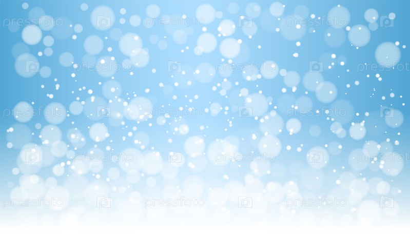 Снежинки и огни боке разбросаны по синему зимнему фону, создавая мягкий, мечтательный эффект. Изображение передает мирную и праздничную зимнюю концепцию. Векторная иллюстрация