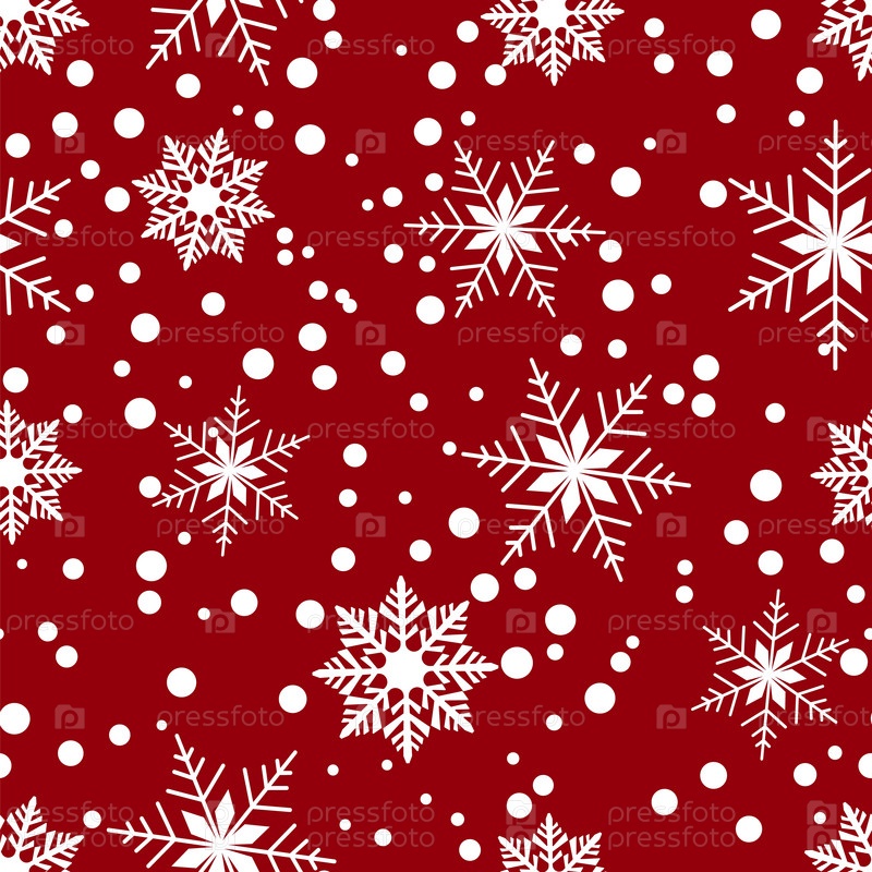 Бесшовный узор с белыми снежинками и точками на красном фоне. Идеально подходит для праздничных тем, зимних дизайнов и праздничных украшений. Векторная иллюстрация