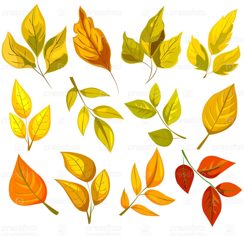 Красочные осенние листья в различных формах. Иллюстрированный стиль на белом фоне. Концепция осеннего сезона и красоты природы. Векторная иллюстрация
