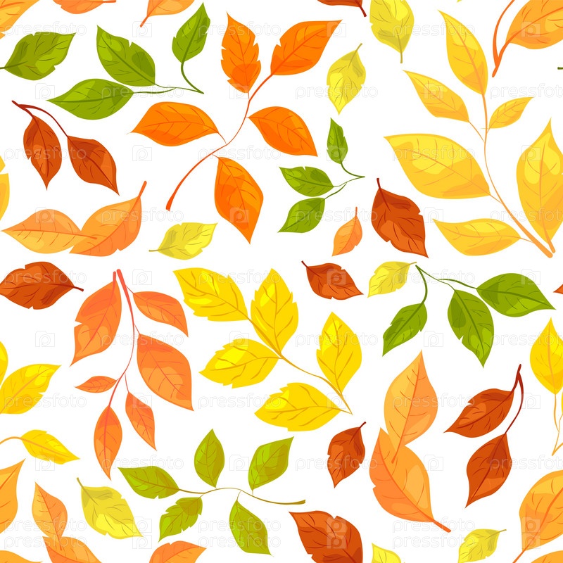Красочные осенние листья в различных оттенках и формах на белом фоне. Концепция бесшовного узора. Векторная иллюстрация