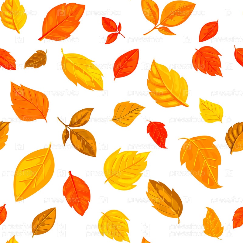 Красочные осенние листья в различных оттенках и формах на белом фоне. Концепция бесшовного узора. Векторная иллюстрация
