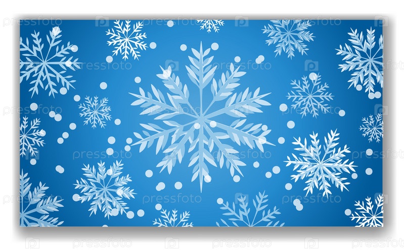 Белые снежинки разных размеров на синем градиентном фоне с эффектом боке. Зимняя праздничная тема, праздничная и холодная концепция сезона. Векторная иллюстрация