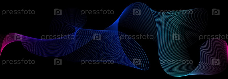 Абстрактные волнистые линии в градиентных цветах синего, розового и зеленого. Линии создают динамичный и плавный узор, представляющий движение и энергию. Концепция текучести и креативности