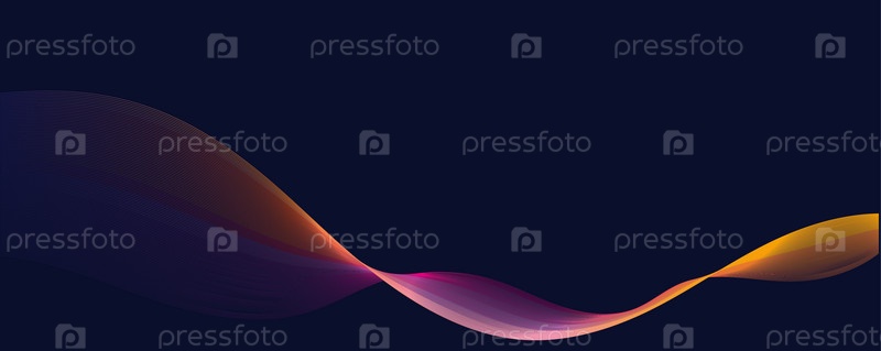 Красочные абстрактные волновые линии в градиентных оттенках оранжевого, розового и желтого на темно-синем фоне. Концепция современного цифрового дизайна. Векторная иллюстрация