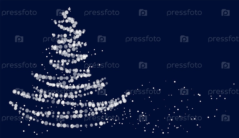 Абстрактный дизайн рождественской елки из огней боке, образующих форму дерева на темно-синем фоне. Концепция праздничного сезона. Векторная иллюстрация