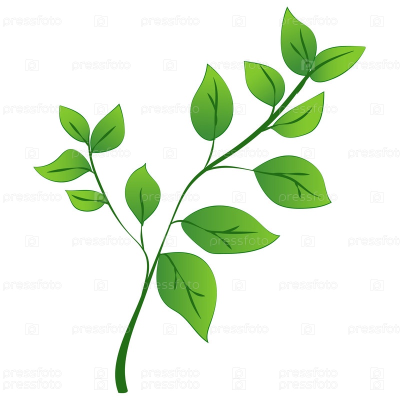 Зеленая лиственная ветка с детализированными листьями, представленная в ярком графическом стиле, на белом фоне. Векторная иллюстрация