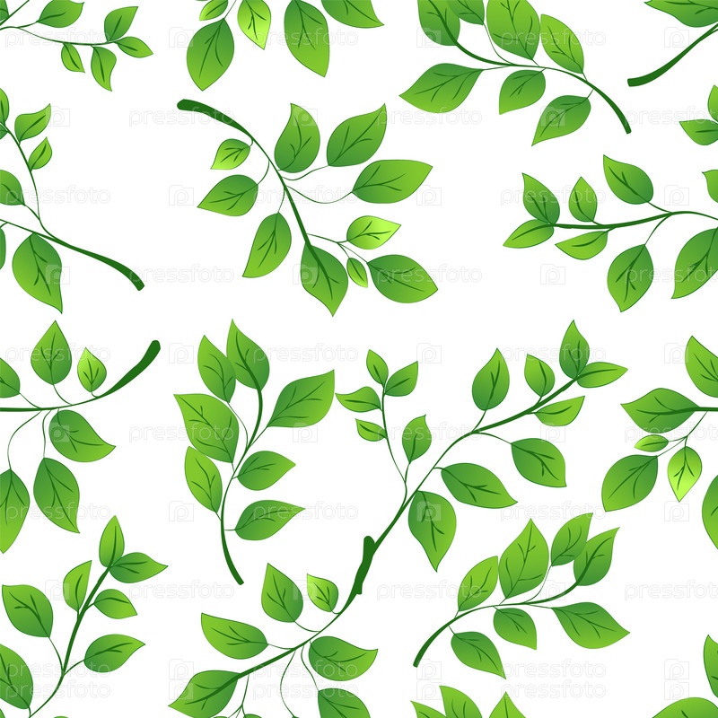 Бесшовный узор с сочными зелеными листьями различной формы на чистом белом фоне. Векторная иллюстрация