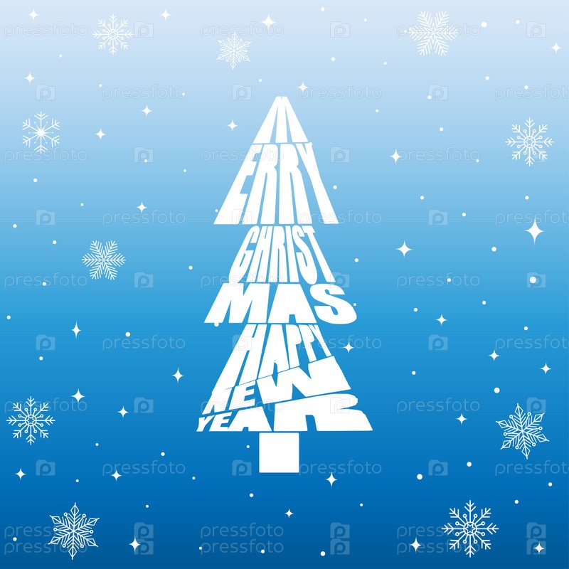 Надпись Merry Christmas and Happy New Year в виде елки Рождественский фон с рукописной типографией и снежинками Вектор