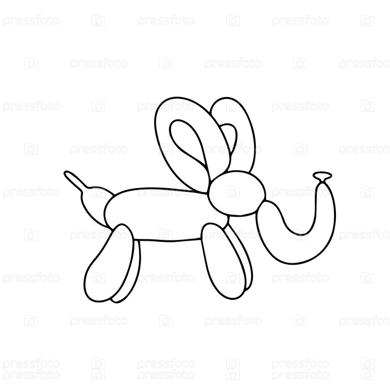 Надувной слон из скрученных воздушных шаров. Элемент дизайна для поздравительной открытки, пригласительного билета, печати, флаера, баннера. Вектор