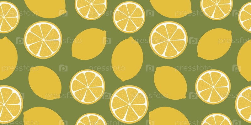 Бесшовный узор из свежих цитрусовых, половинок нарезанных лимонов и целых лимонов