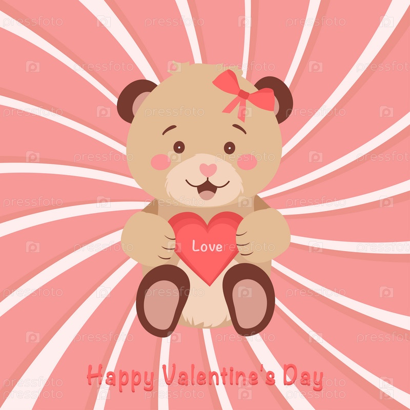 Милый плюшевый мишка держит в лапках сердечко. Рисунок ко Дню святого Валентина, Дню плюшевого мишки. Векторная иллюстрация. Вектор. Векторная иллюстрация