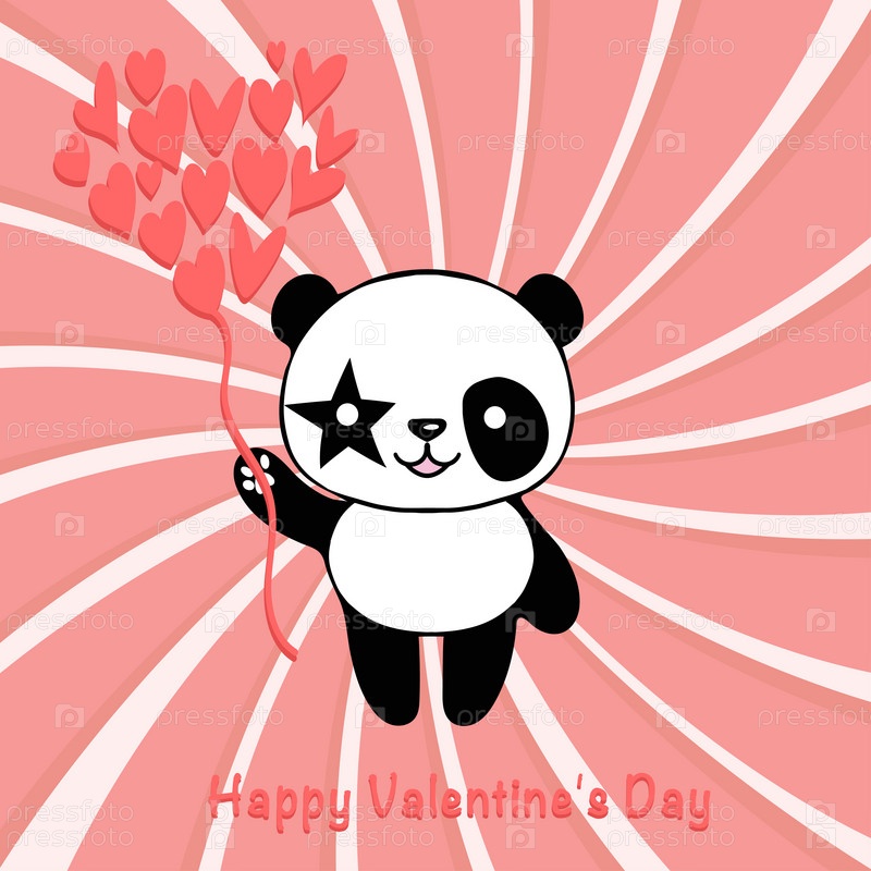 Валентинка с милой пандой и сердечками. Концепция любви. Иллюстрация на розовом фоне