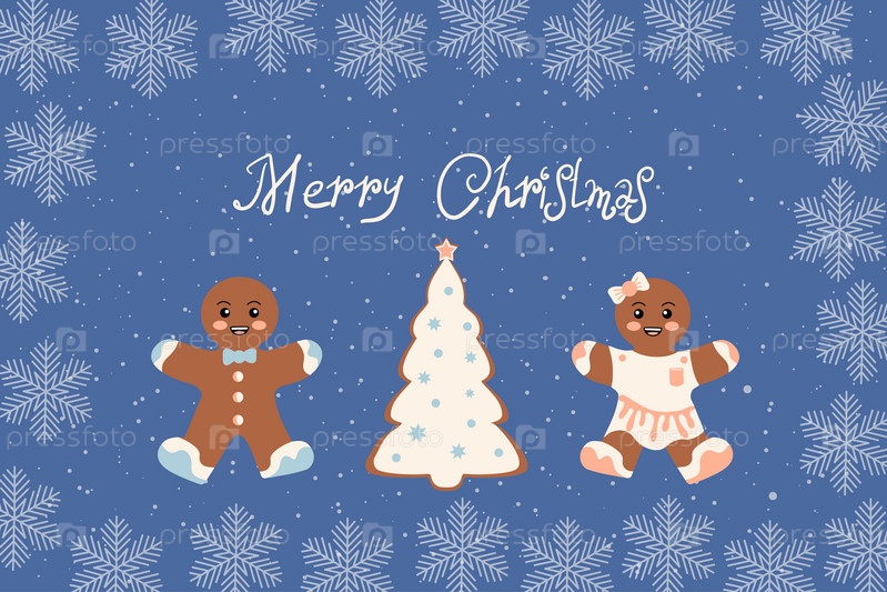 Рождественский фон с пряничными украшениями. Векторная иллюстрация
