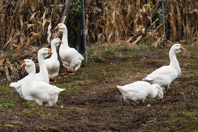 Шесть белых гусей пасутся осенью