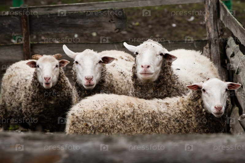 Четыре овцы стоят в загоне и с нетерпением ждут