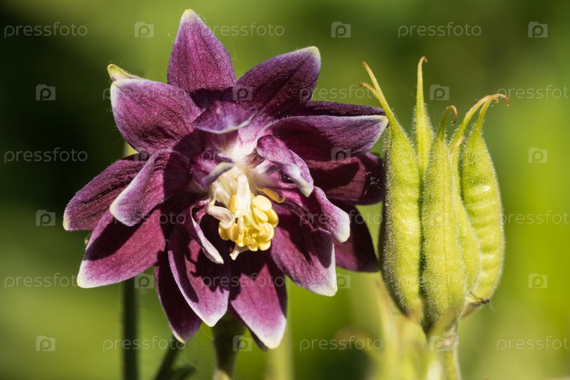 Цветок аквилегии с лепестками и луковицей