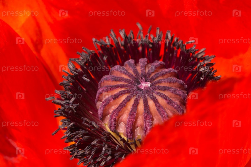 Семенная головка цветущего декоративного мака крупным планом