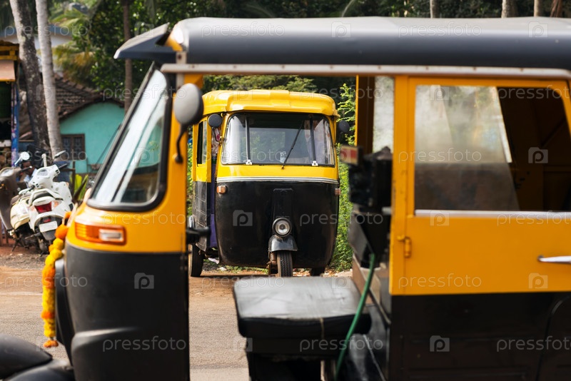 Транспортное средство — желто-черный авторикша, предназначенный для перевозки туристов в страны Азии