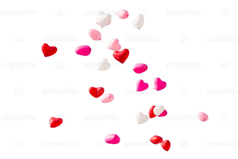 Белые, розовые и красные воздушные шары в форме сердца на белом изолированном фоне