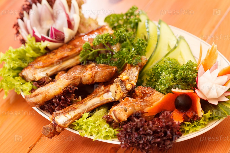 Ребрышки на гриле с овощами
