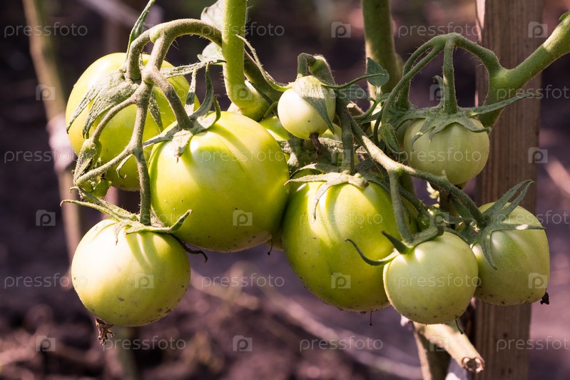 Зеленые помидоры на ветке в саду
