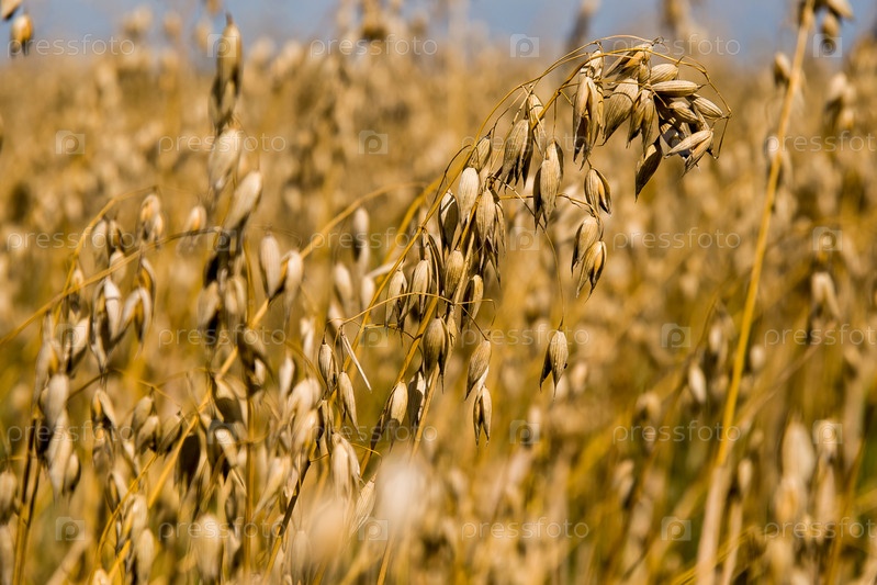 Колос овса на фоне овсяного поля