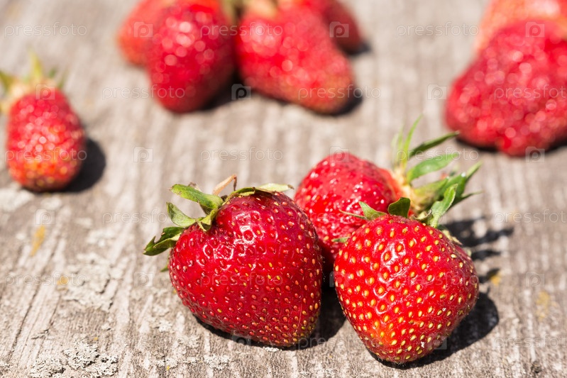 Спелая клубника на старой серой доске крупным планом