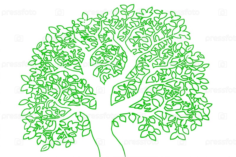 Нарисованное зеленым мелом дерево на белом изолированном фоне