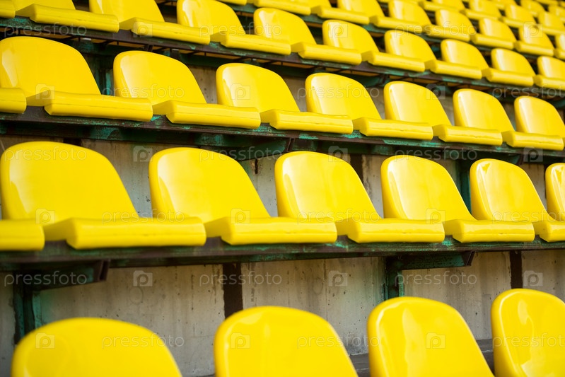 Пластиковые желтые сиденья на спортивном стадионе