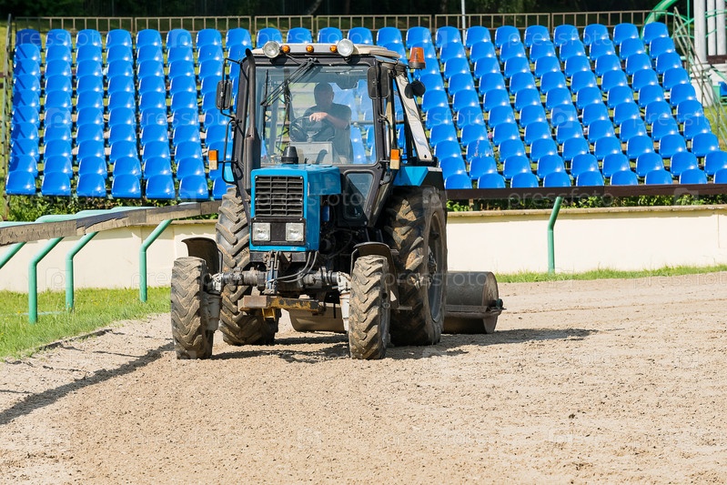Уплотнение поверхности грунта конного манежа с помощью трактора и катка