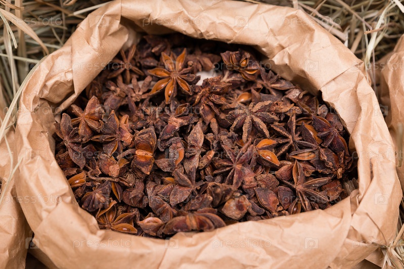 Бумажный пакет с анисом крупным планом