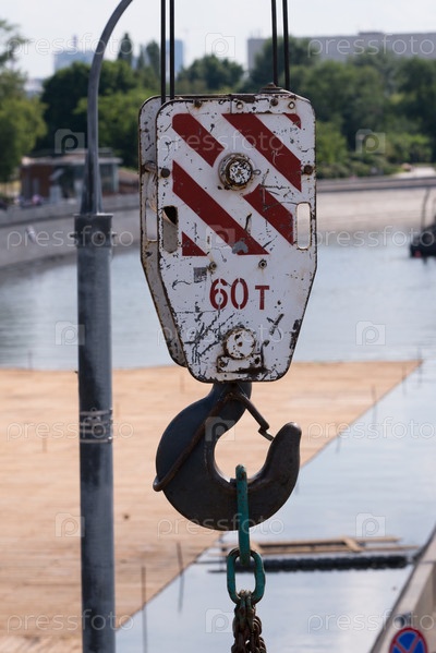 Подъемный крюк многотонного автомобильного крана с цепью