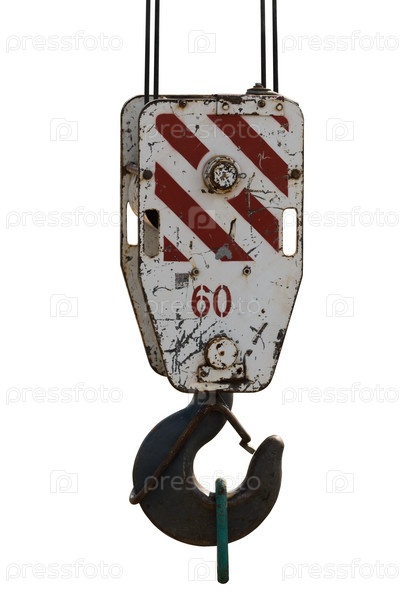 Грузоподъемный крюк автокрана большой тоннажности с цепью на изолированном фоне