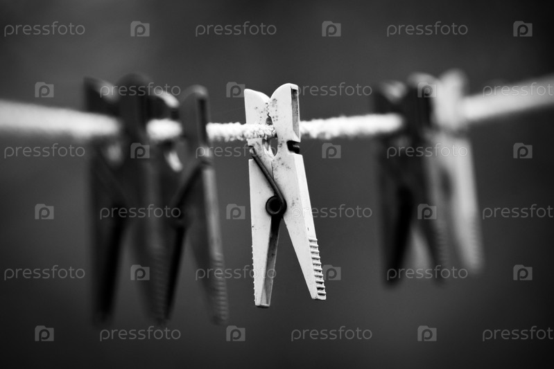 Черно-белые обои. Белые и черные прищепки на толстой веревке