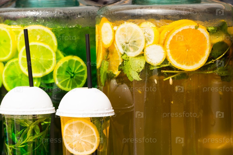Холодный освежающий цитрусовый лимонад из свежих фруктов и мяты