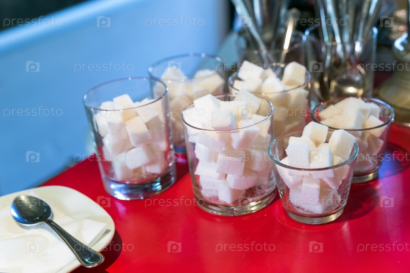 Стеклянные стаканчики, наполненные кусочками сахара