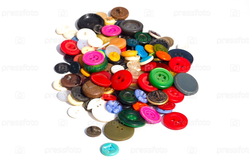 Цветные пуговицы из старой одежды для поделок оптом на белом фоне