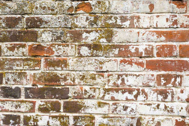 Старая стена из красного кирпича, покрытая побелкой, текстура