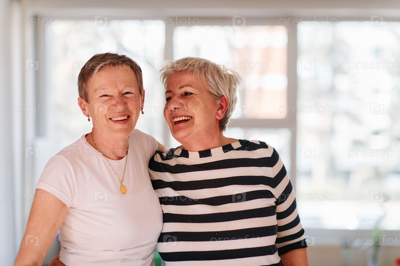 Двое старших друзей радостно обнимаются после успешного завершения совместной тренировки