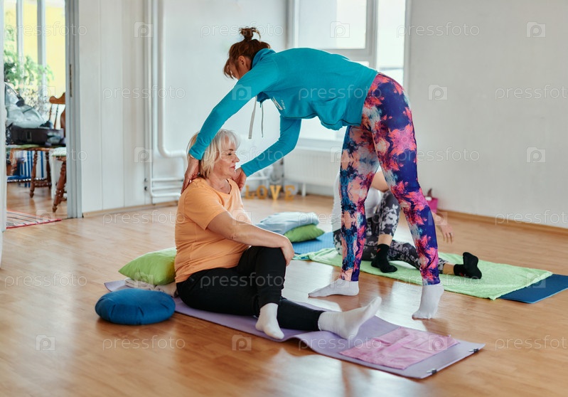 Опытный инструктор по йоге демонстрирует безопасные и эффективные упражнения для пожилых людей, направленные на улучшение гибкости и равновесия