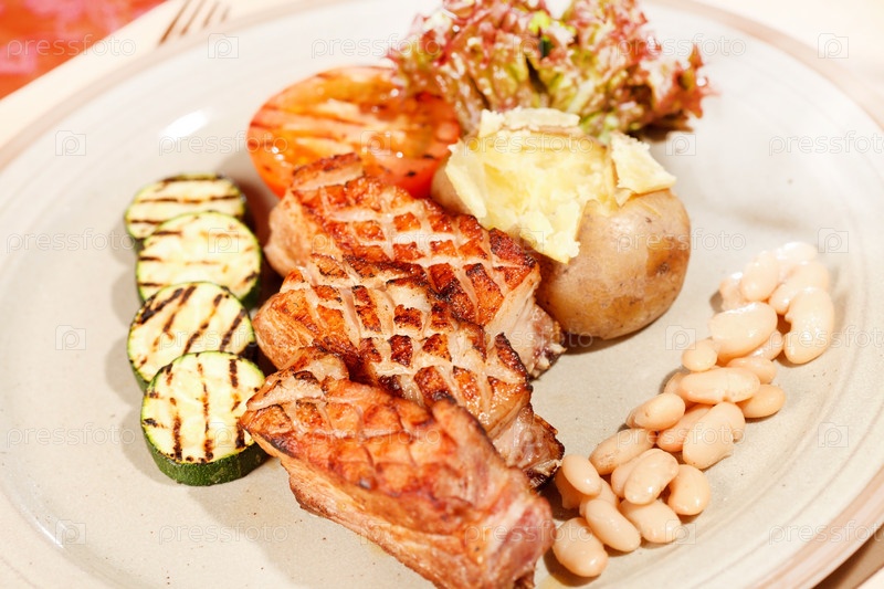 Мясо с овощами, приготовленные на гриле