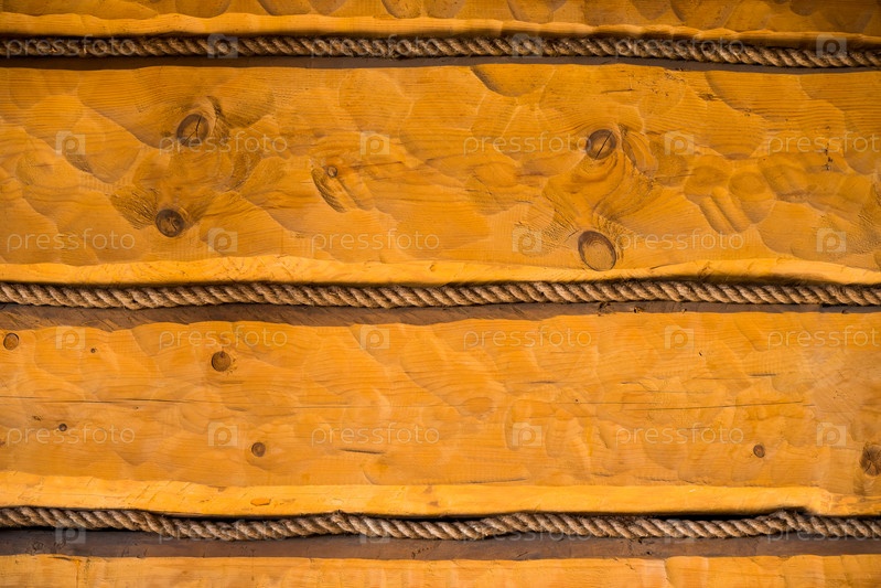 Деревянные бруски, покрытые желтой защитной пропиткой и веревкой между швами