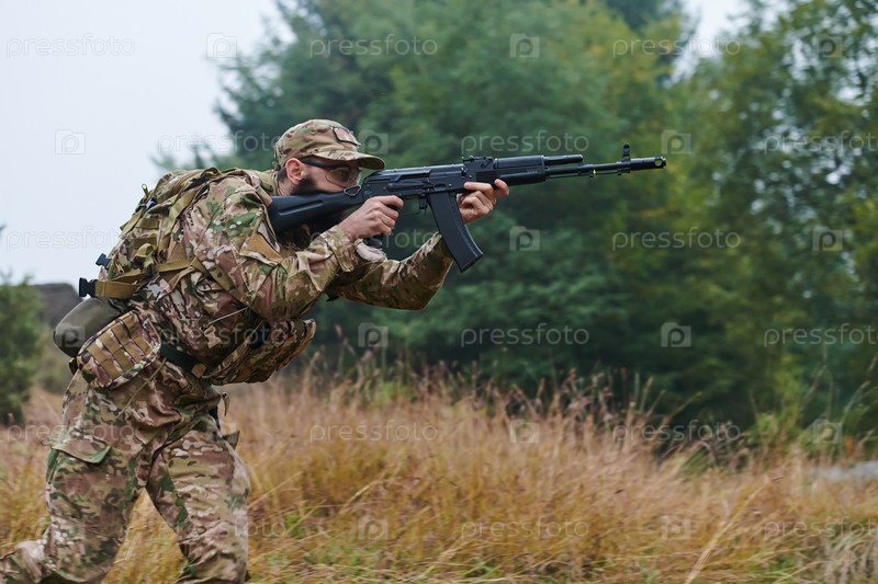 Элитный солдат, замаскированный и скрытно перемещающийся по опасной лесной местности, выполняет секретную миссию в уединенном лесном районе