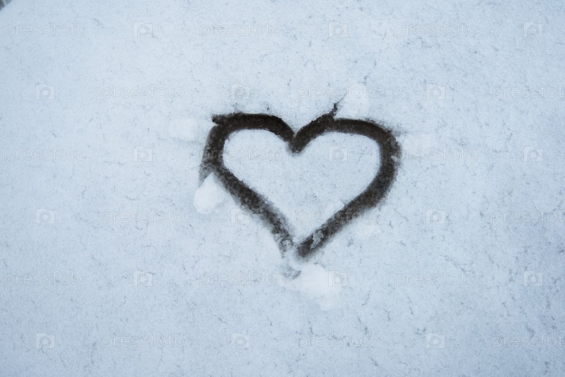 Нарисованное сердце на снежном фоне